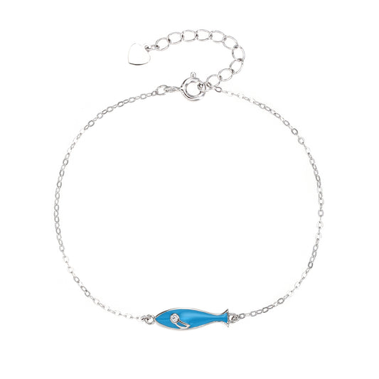 Pulsera de Cadena con Dije de Pez en Plata 925 – Esmalte Azul y Circonita – Diseño Minimalista con Acabado en Rodio – Ajustable 16 + 3 cm – Con Bolsita de Regalo