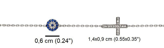 MYSTIC JEWELS By Dalia - Pulsera de plata de ley 925 con mal de ojo y cruz de circonitas para regalar, cumpleaños, año nuevo